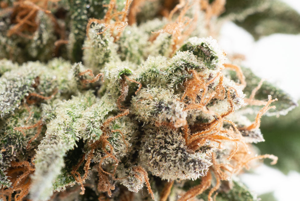 On the right is a brush trimmed bud which retains more of its organic shape with most of the trichome heads intact.